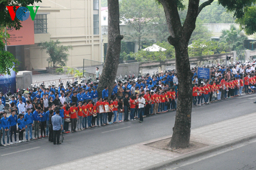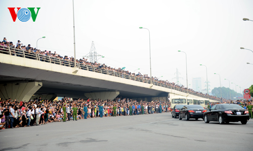 The convoy carrying the coffin passes through a number of streets in Hanoi