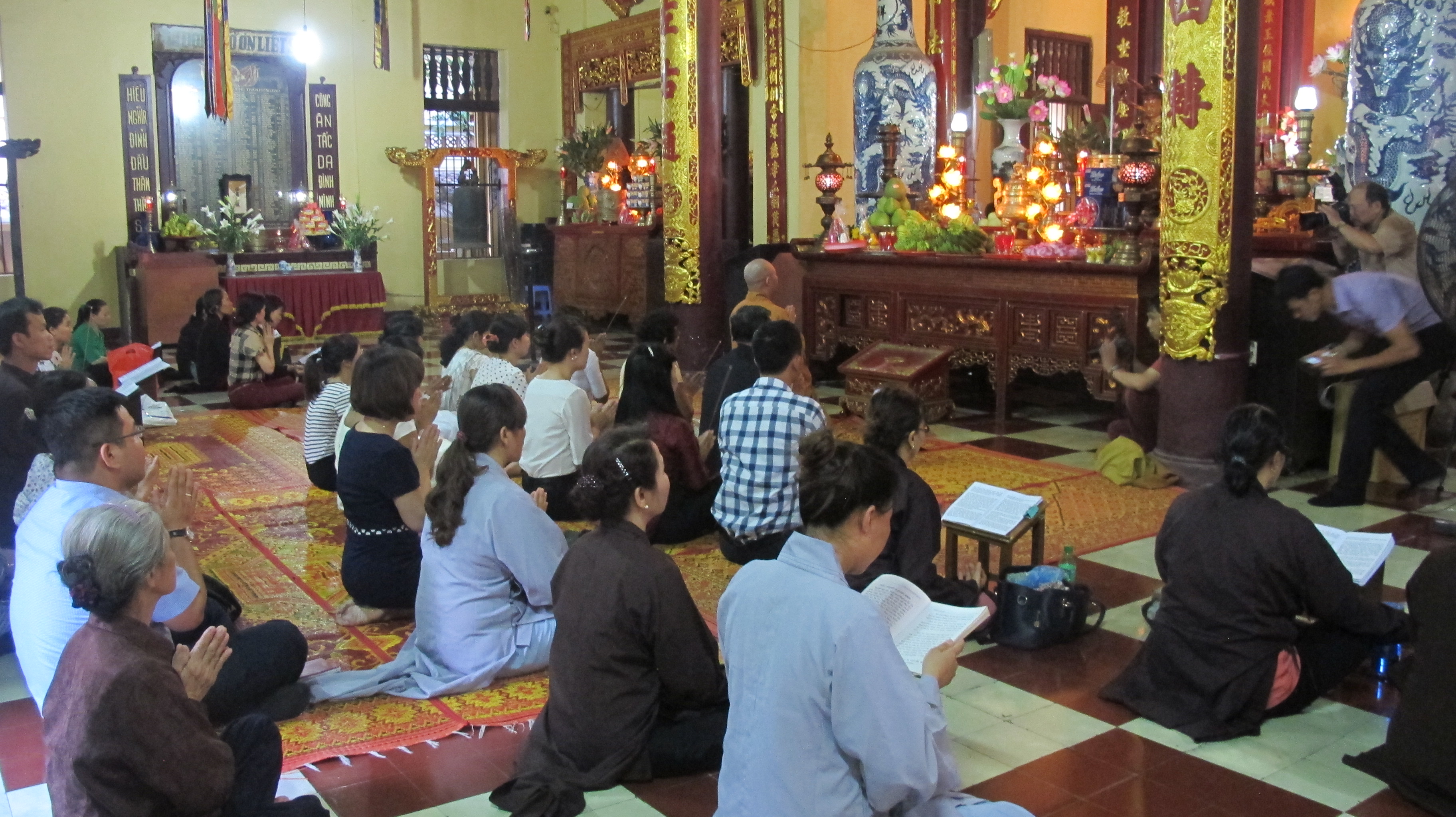 | Earlier, an offering and praying ceremony was conducted by the organizers and representatives in front of the Three Jewels in the Pagoda. |