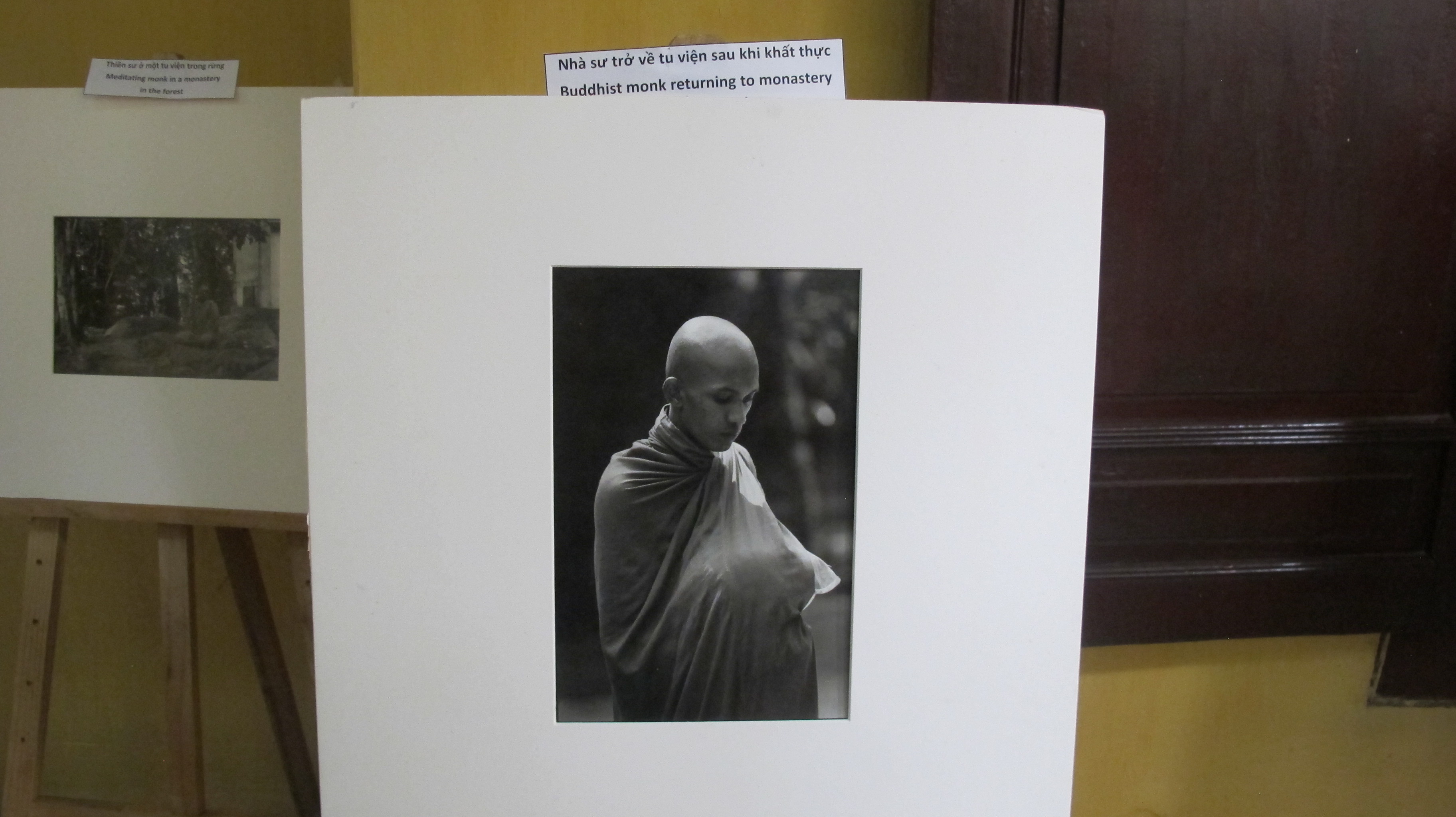 | On display were about 40 black and white photographs, framed posters and prints. They are arranged along Quan Su pagoda’s lobby. |