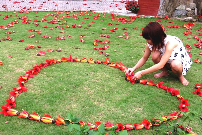 ![]() Walking along streets, tourists are amazed by the charming red cotton flowers. |