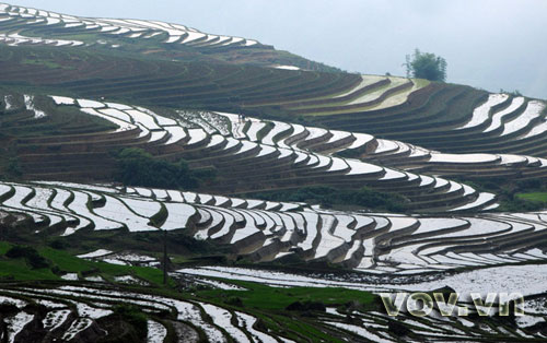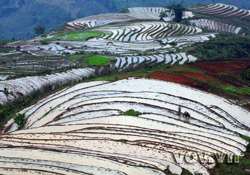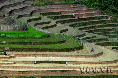 (VOV) - Green terraced fields at the foot of the mountain seemingly keep off the intense heat of the sun in summer.