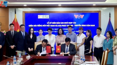 (VOVWORLD) -The Voice of Vietnam (VOV) Vice President Ngo Minh Hien and Chairman of China’s Yunnan Media Group He Yaning signed a cooperation agreement between the two stations for the new phase at a ceremony in Hanoi on Wednesday.