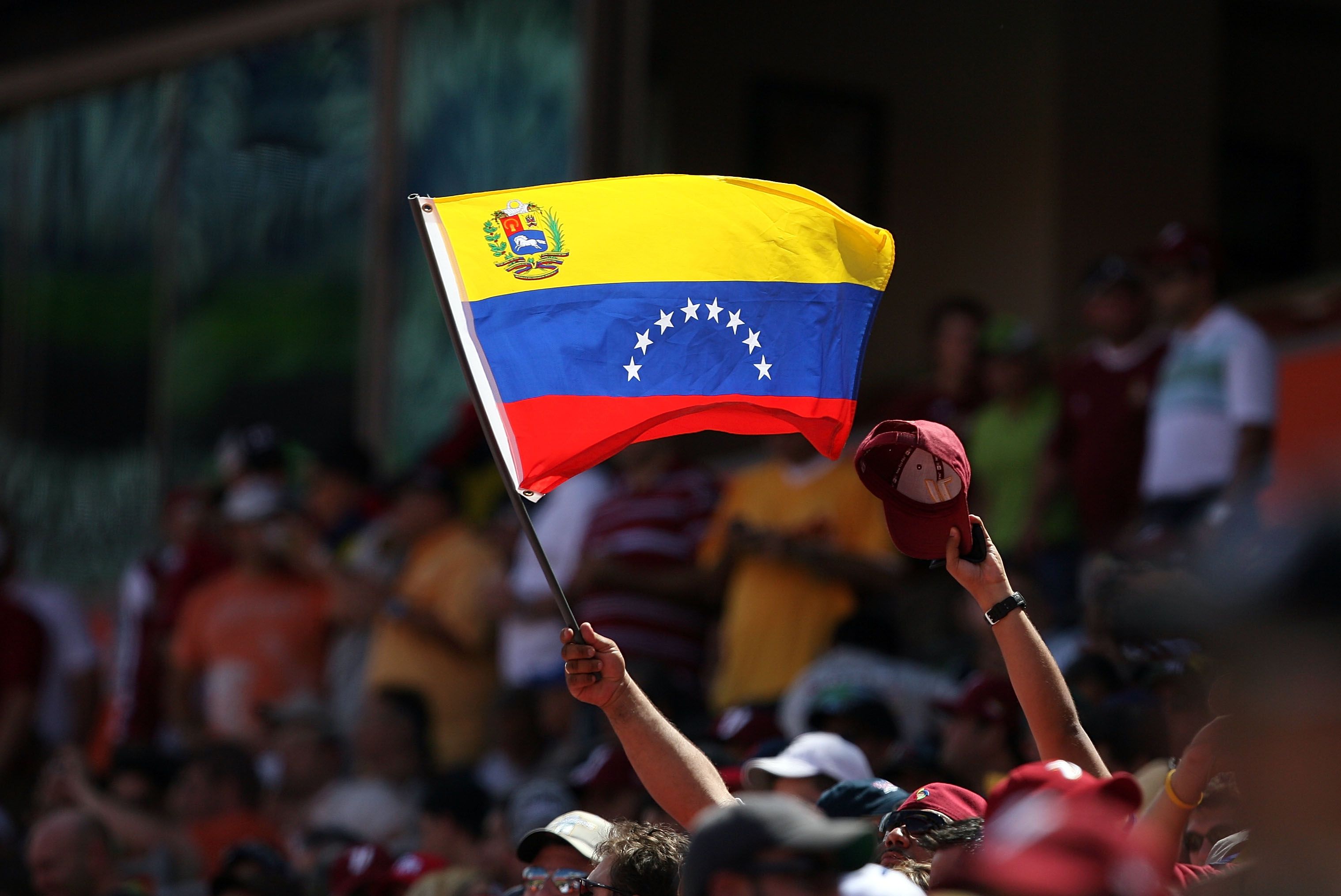 | Venezuela fans cheer with a country flag while taking on the Netherlands during round 2 of the World Baseball Classic at Dolphin Stadium in 2009 in the US. (Photo: Doug Benc/Getty Images) |