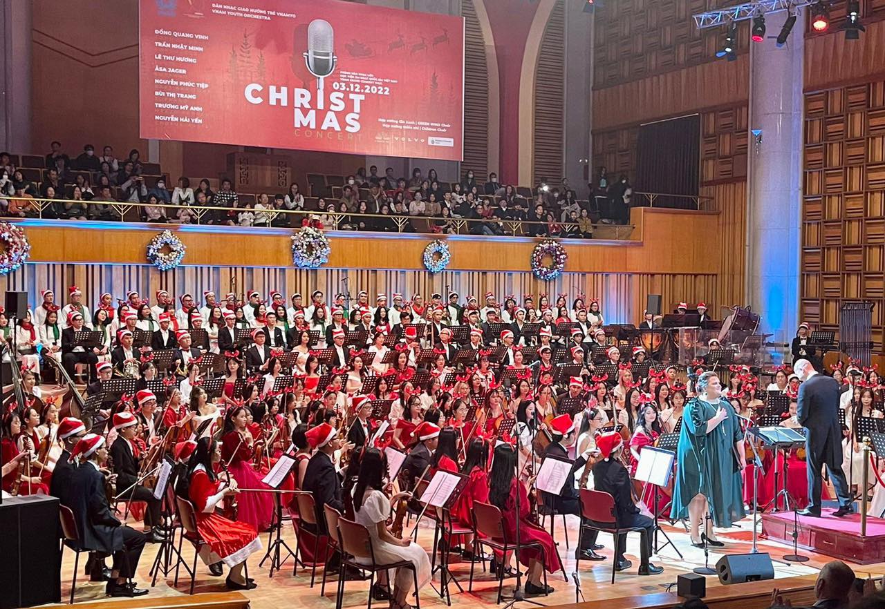 Åsa Jäger at the Christmas concert with artists from the Vietnam Academy of Music (Photo credit: Swedish Embassy in Hanoi) |
