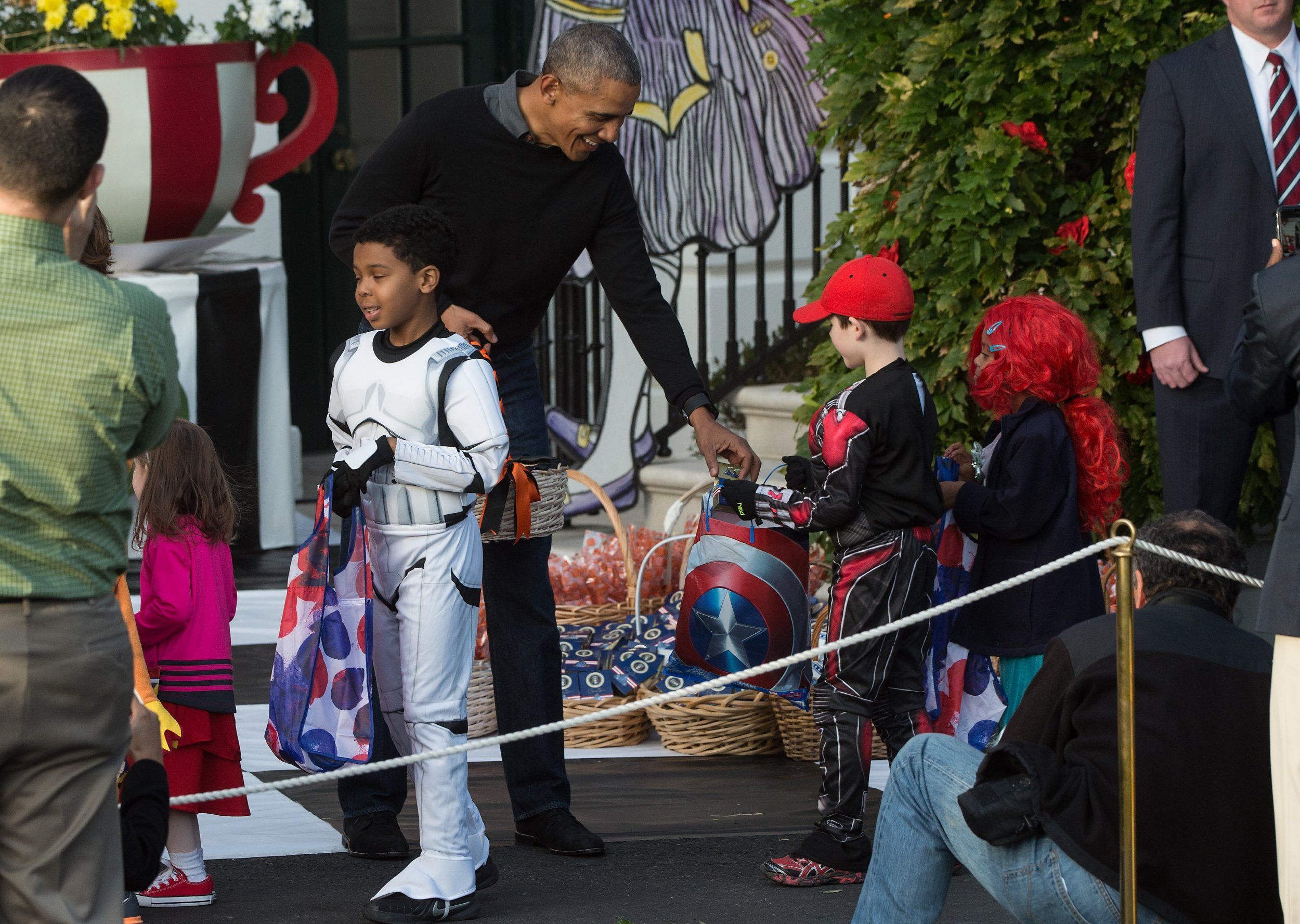| US President Barack Obama gave out Halloween treats to children at the White House during the Halloween night 2016. (Photo: Metro.co.uk/Getty) |