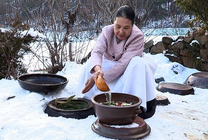 When all the ingredients are mixed, Kimchi is put in the Kimchi jars and burried in the ground. (Photo: Cultural Heritage Administration)