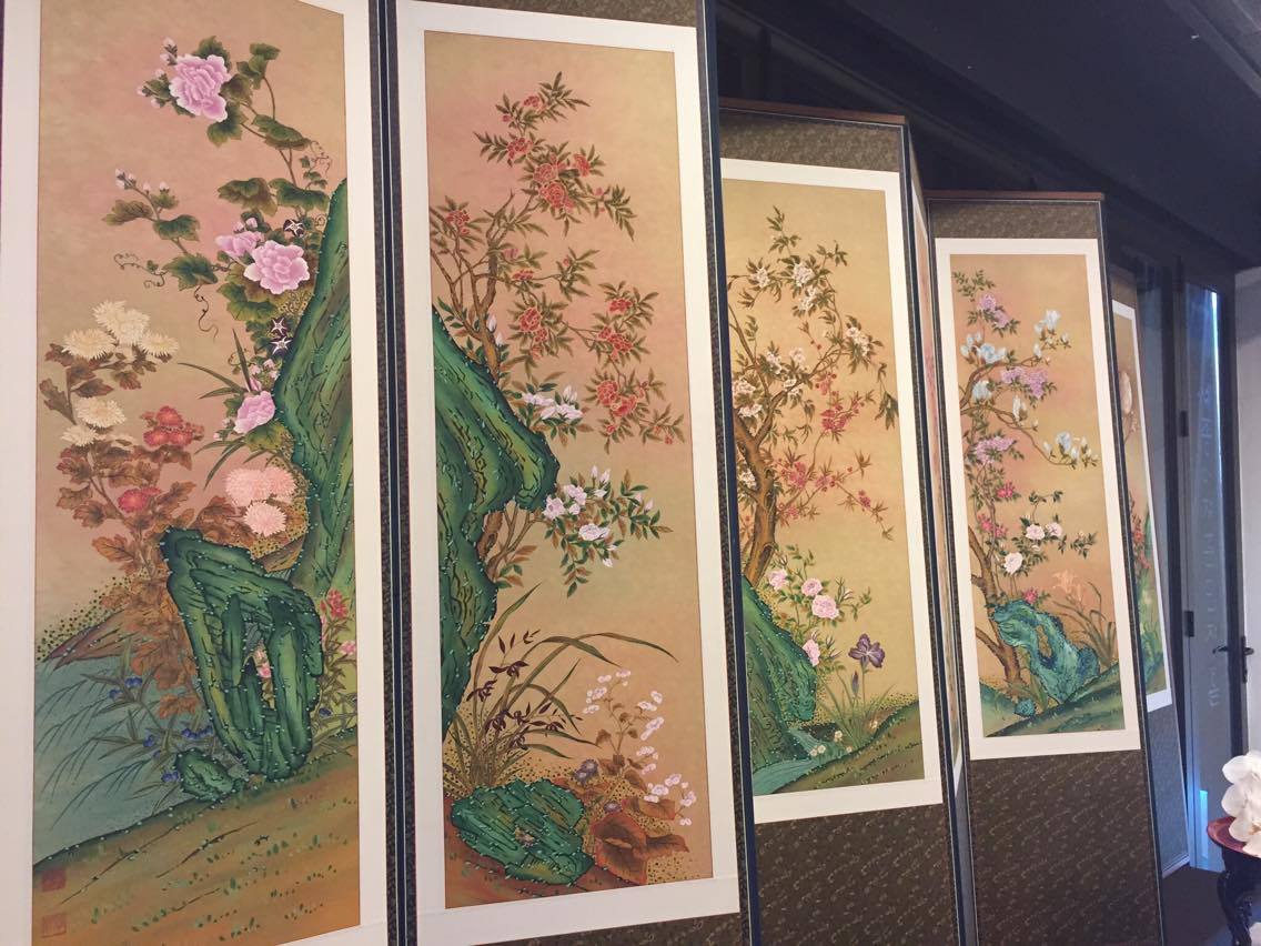 Minhwa is usually produced to decorate the main door of a house or can be done on folded screens and other furniture to bring happiness, luck, prosperity, wealth, fame, offspring, and even to ward off evil spirits. It usually takes a huge amount of effort, concentration and great skill to finish a Minhwa painting. Artisan Jung Seung Hui continues:“The papers used to paint Minhwa art are traditional Korean hanji papers made from hundreds of layers of natural glue paint and wet paper. In the past, we used to paint Minhwa with colors purely from nature. However, as they easily fade, we now mix them with other long-lasting materials to maintain the paintings. It took me 7 - 15 days to finish a small Minhwa piece but for a larger piece such as this panel-folding scene, it took up to 2 years to create”.