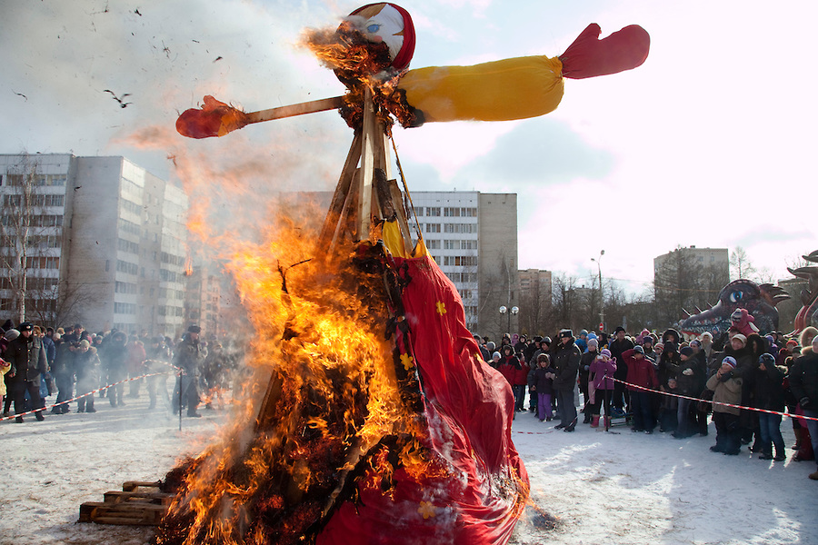 | The scarecrow of Maslenitsa, the symbol of the holiday, must be burnt at the end of the Festival. (Photo: The Jeremy Nicholl) |