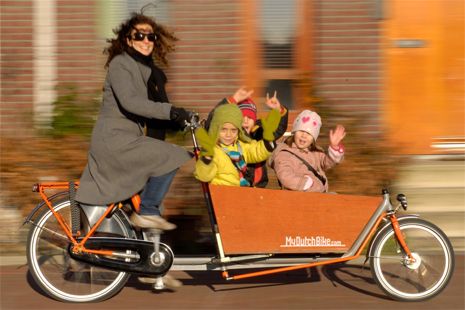 This is multi-purposed bike is called Bakfiet in Dutch. With super-capacity cargo space, it can almost replace a car (Photo: realdutchbikes.com)