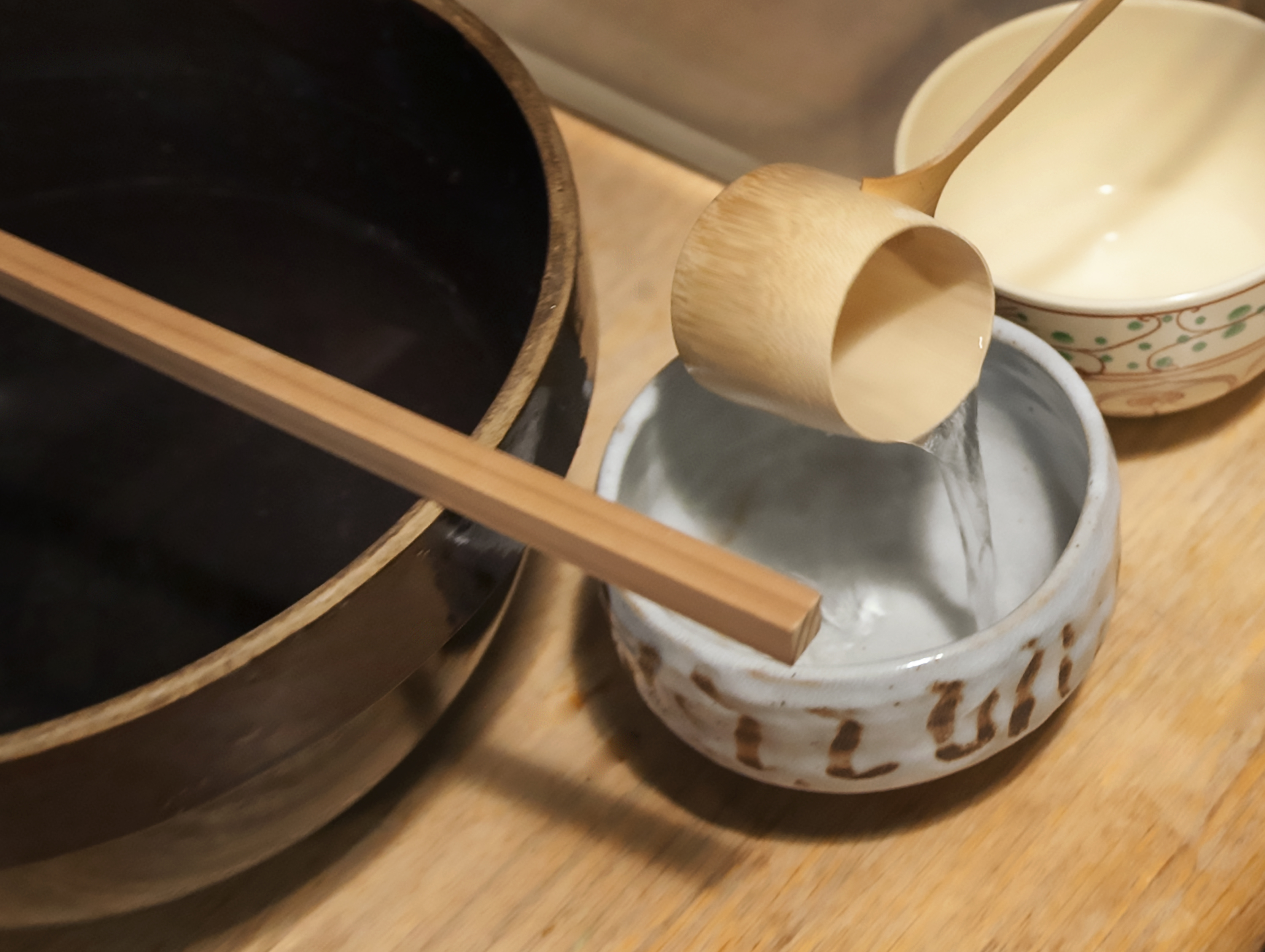A hishaku (bamboo ladle) and chawan (bowl) used in the Japanese tea ceremony. Before mixing the tea, the bowl is rinsed with fresh water. (Photo: World History Encyclopedia) |