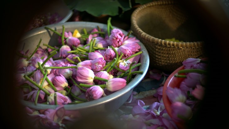 During early morning in the summer, local villagers bring lotus flowers back home which they pick from West Lake in Tay Ho district. |