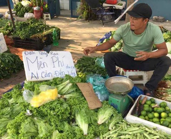 Ein Gemüsehändler in Dong Nai, der täglich Gemüse an arme Arbeiter verschenkt. (Foto: Plo.vn) |