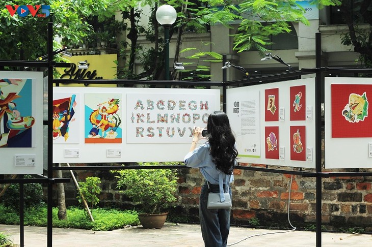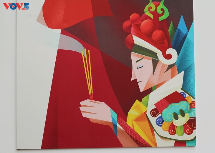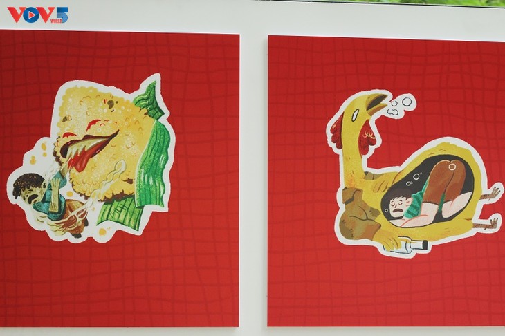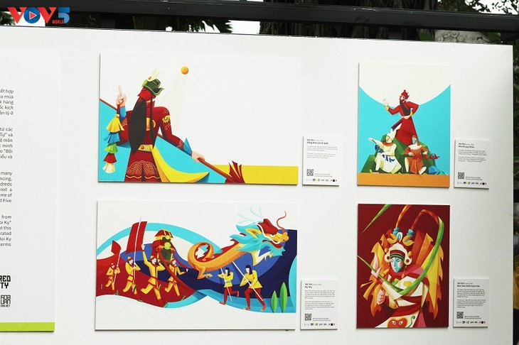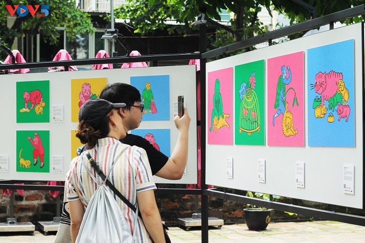 | Durch moderne künstlerische Sprache haben junge Künstler die Schönheit der vietnamesischen Volkskultur in Dong-Ho-Gemälden, Boi-Gesang und Kinderreimen, die mit der Kindheit vieler vietnamesischer Generationen verbunden sind, gewürdigt. |
