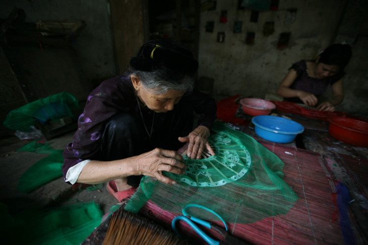 | Bereits seit dem 19. Jahrhundert ist das Papierfächer-Dorf Chang Son im Kreis Thach That in Hanoi Vorort im In- und Ausland bekannt. Gemäß des Stoffes und der Geschicklichkeit ist der Preis der Fächer unterschiedlich. Sowohl Alte als auch Kinder können sich an der Produktion beteiligen. |