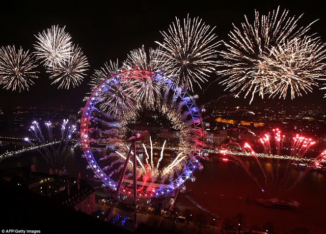 In der Nacht zum Jahreswechsel versammeln sich die Briten am Ufer der Themse. Wenn die Uhr Big Ben 22 Uhr zeigt, schauen die Briten das Feuerwerk vom “London Eye”, auch bekannt unter der Bezeichnung Millennium Wheel, an. |