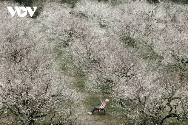 | Seit Anfang Dezember blühen bereits unzählige reinweiße Pflaumenblüten und tauchen die Hänge des Moc-Chau-Plateaus in ein makelloses Weiß. |