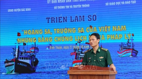 (VOVWORLD) - Am Donnerstag haben die Behörde für Information und Kommunikation und die Bildungsbehörde der Provinz Binh Thuan die digitale Ausstellung „Hoang Sa, Truong Sa von Vietnam – die historischen und rechtlichen Beweisen“ in der Oberschule Bac Binh in der Provinz Binh Thuan organisiert.