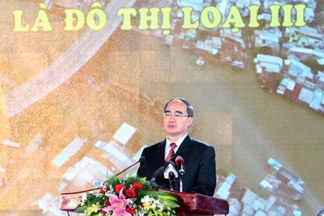 (VOVworld) – Die Stadt Nga Bay in der südvietnamesischen Provinz Hau Giang ist am Freitag als Stadt der dritten Kategorie anerkannt worden. Der Vorsitzende der vaterländischen Front Vietnams Nguyen Thien Nhan und Vizepremierminister Vu Van Ninh waren bei der Veranstaltung anwesend. Nguyen Thien Nhan sagte, die Regierung wisse um den Verdienst der Stadt Nga Bay und der Provinz Hau Giang.