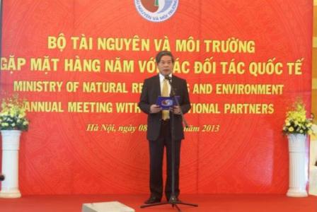| Minister für Naturressourcen und Umwelt Nguyen Minh Quang beim jährlichen Treffen mit den internationalen Partnern im Jahr 2013. (Foto: gdmv.gov.vn) |