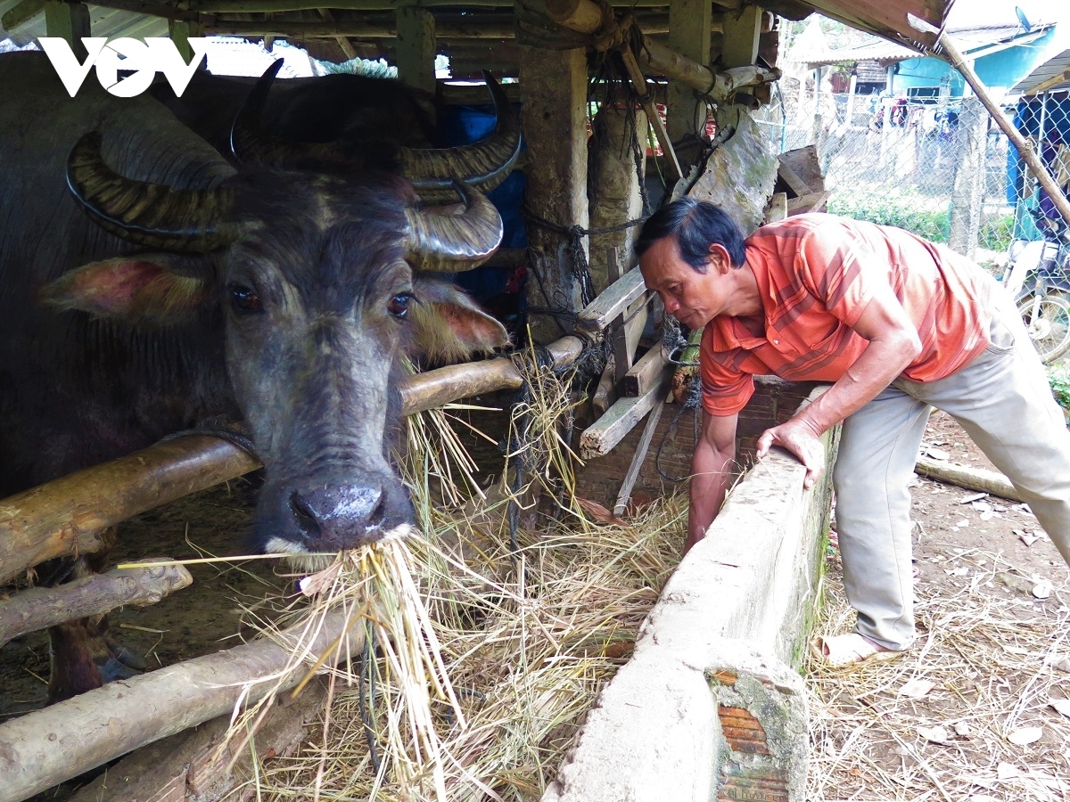Der Bewohner Pham Van Khai im Dorf Giay im Kreis Ba To erzählte, im Jahr 2016 habe der Staat seiner Familie einen Wasserbüffel geschenkt. Seine Familie wurde eingewiesen, einen Stall zu errichten, Gräser anzupflanzen und das Tier zu pflegen. Er hat die Technik zur Pflege und Vermehrung der Büffel erlernt und mit anderen Bauernfamilien, die auch Büffel züchten, die Tiere sich vermehren lassen. Nach fünf Jahren hatte er schon eigene Herde von Büffeln und auch Büffel verkauft. Heute hat er in seinem Stall insgesamt sieben Wasserbüffel. Sein erster Büffel ist der Vater von mehr als 40 Büffelkälbern im Dorf. Phan Van Khai erzählte, zahlreiche Familien im Dorf Giay konnten dank der Büffelzucht einen Ausweg aus der Armut finden.