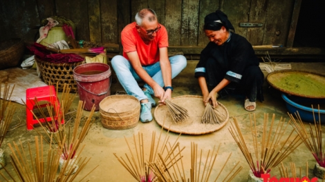 (VOVWORLD) - Im Laufe von hunderten Jahren wird die Herstellung von Räucherstäbchen der Volksgruppe der Nung An über Generationen bewahrt. Die Nung An wohnen in der Wohngemeinschaft Phja Thap auf dem Bergfuß Ta Hung in der nordvietnamesischen Provinz Cao Bang. Mit den natürlichen Materialien und der Geschicklichkeit der Künstler werden die Räucherstäbchen hergestellt, die von der typischen Kulturidentität der Nung An geprägt werden.
