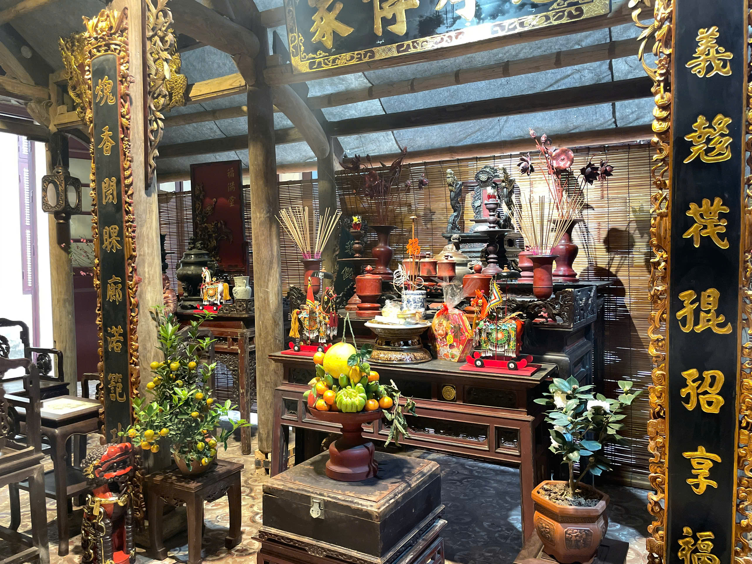 „Wir haben ein traditionelles, dreigeteiltes Haus nachgebaut, das typisch für Nordvietnam ist. Innerhalb dieses Raumes wurde der Ahnenaltarbereich sorgfältig eingerichtet. So entstand inmitten der Altstadt eine warme und gemütliche Tet-Atmosphäre.“
