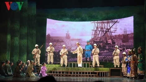 (VOVWORLD) - Zum 100. Jahrestag des volkstümlichen Gesangs Cai Luong haben die Künstler aus dem ganzen Land den Zuschauer das Cai Luong Theater-Stück „Lehrer Ba Doi“ präsentiert. Das Theater spiegelt die ruhmreiche Geschichte des Musikers Nguyen Quang Dai, der auch als Lehrer Ba Doi bekannt wurde. Er hatte den großen Beitrag zur Gründung und Entwicklung der Bühne des Cai Luong-Gesangs geleistet. VOV-Intendant Nguyen The Ky hat das Szenario von „Lehrer Ba Doi“ geschrieben, das dann von Künstlern Hoang Song Viet und Pham Van Dang für das Cai Luong-Theater komponiert wurden. Durch das Theater können die Zuschauer außerdem etwas über die Herkunft und die künstlerischen Werte dieser Kunstart in Vietnam erfahren.