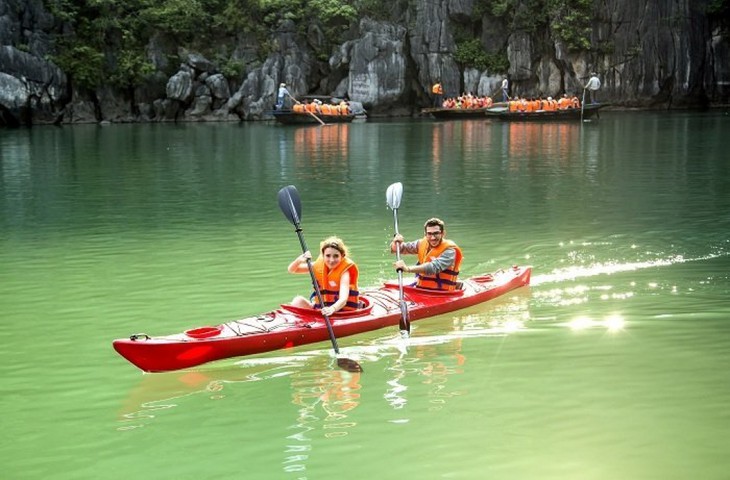 | Abenteuer mit dem Kajak in der Halong-Bucht. (Foto: truyenhinhdulich.vn ) |