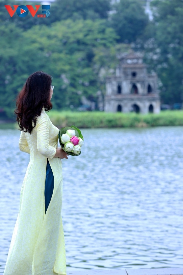 | Durch das Tragen von Ao Dai zum Fotografieren können Frauen nicht nur schöne Momente bewahren, sondern auch den Wert der Tracht Ao Dai, das Kulturerbe Vietnams, bewahren. (Foto: Hai Bang/VOV-Verkehrskanal) |