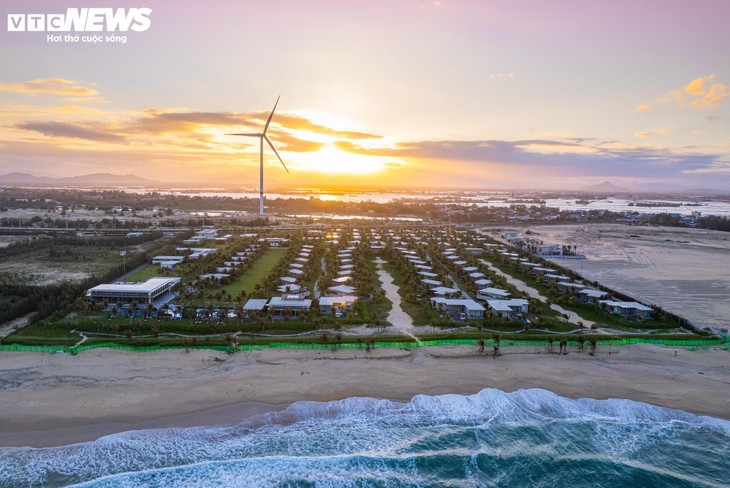 Auf der Halbinsel Phuong Mai, wo sich die Wirtschaftszone Nhon Hoi befindet, drehen sich riesige Windturbinen rhythmisch vor den weißen Wellen. Der blaue Himmel und lange weiße Sandstrände schaffen ein Bild der Moderne gemischt mit Wildnis – ein Symbol für die Schnittstelle zwischen Natur und Technologie.