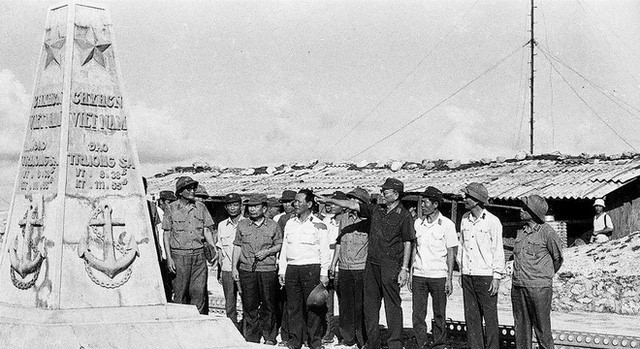 | Anfang Mai 1988 besuchte Verteidigungsminister, General Le Duc Anh Offiziere und Soldaten, die das Hoheitsgewässer Vietnams verteidigten. |