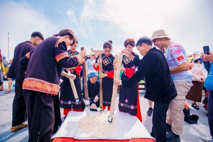 Touristen zerstampfen den Day-Kuchen mit Angehörigen der örtlichen Volksgruppen. (Foto: baotintuc.vn) |