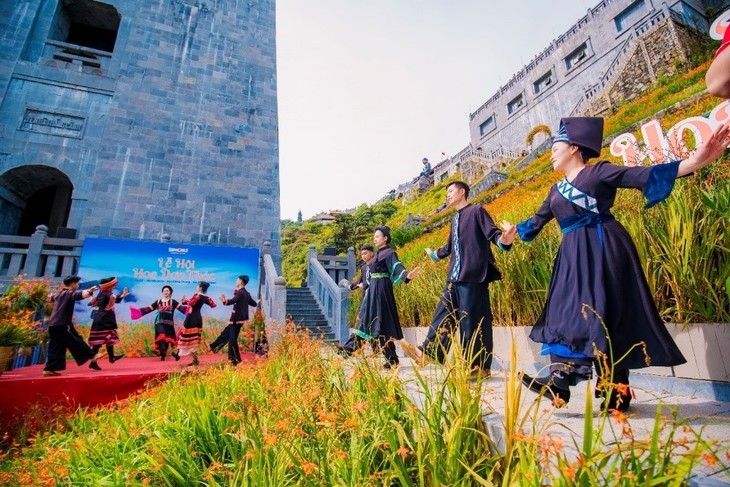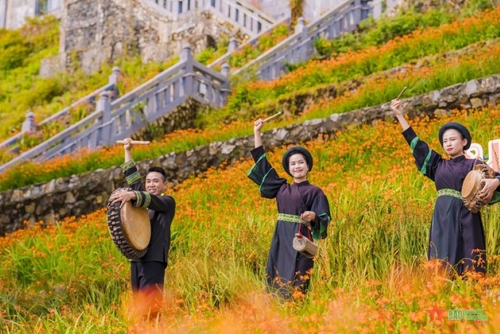 Der Khen-Tanz der Volksgruppe der H'Mông oder die lustigen Trommelaufführungen der Volksgruppe der Roten Dao finden inmitten leuchtender Blumengärten statt. (Foto: qdnd.vn) |