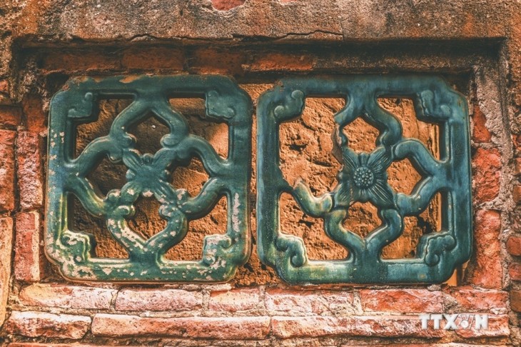 | Eine Ziegelmauer mit einem grünen Fensterrahmen, verziert mit typisch asiatischen Mustern. (Foto: VNA) |