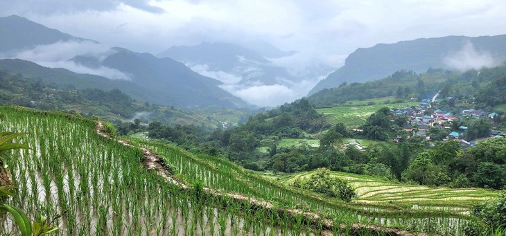 | Terrassenfelder in Y Ty sind schön nicht nur bei der Reisernte im Herbst, sondern auch im Sommer. (Foto: Hoang Xuan) |