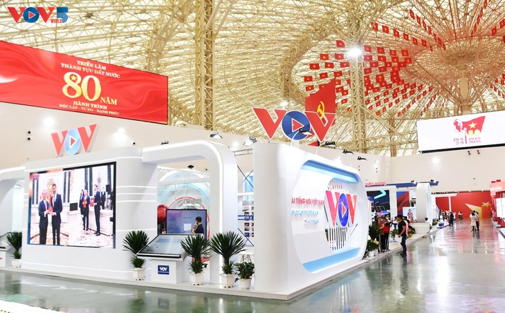 | Die Ausstellung „80 Jahre Begleitung des Landes von VOV“ ist bis zum 15. September 2025 in Halle 8 des Nationalen Ausstellungszentrums in der Gemeinde Dong Anh in Hanoi geöffnet. |