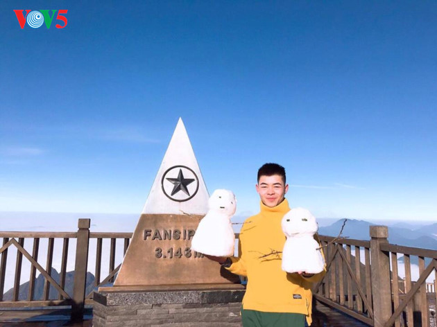 | Falls die Temperatur niedrig bleibt, können Touristen das Eis auf dem Fansipan am frühen Morgen sehen. |