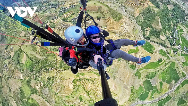 | In den vergangenen Jahren haben Besucher die Möglichkeit, die Schönheit der Reisterrassen von oben beim Gleitschirmfliegen zu betrachten. |