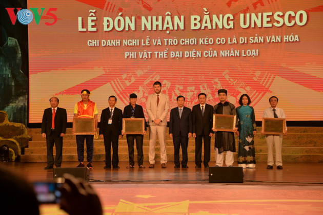 Vertreter der Stadt Hanoi und der Provinzen Vinh Phuc, Lao Cai sowie Bac Ninh erhielten die Anerkennungsurkunde der UNESCO für das Spiel "Tauziehen" als immaterielles Kulturerbe der Menschheit.