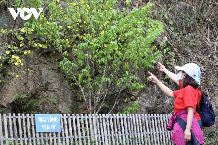 Die etwa zehn Kilometer lange National-Straße 18 führt entlang zum Berg Yen Tu. Die Straße wurde mit großen Aprikosenbäumen der gelben Blüte dekoriert, eine Attraktion für Touristen. |