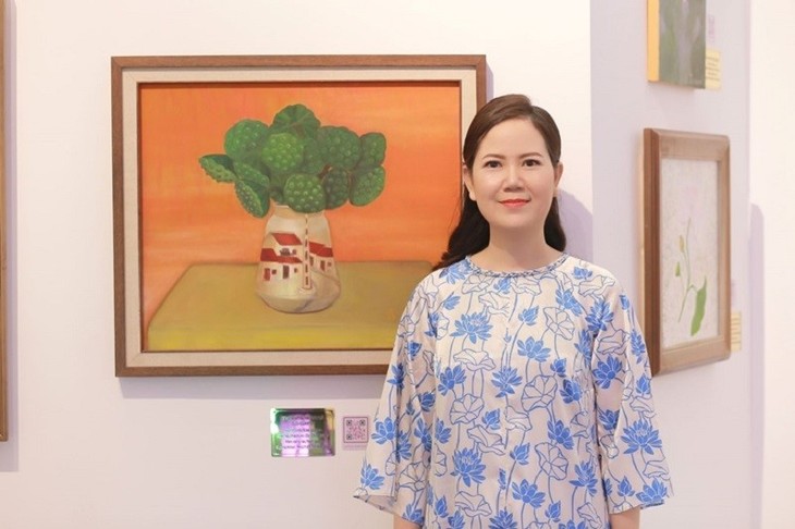 Malerin Kim Duc und Sen-Bilder auf der Ausstellung. (Foto: dangcongsan.vn)