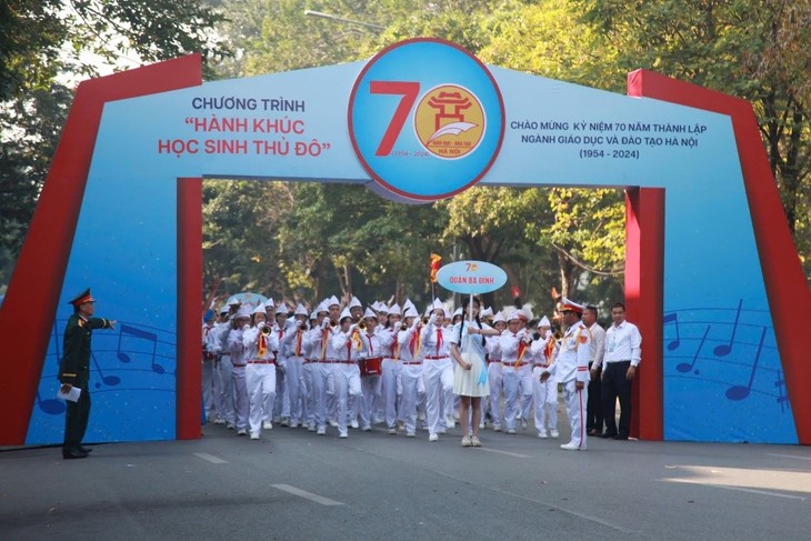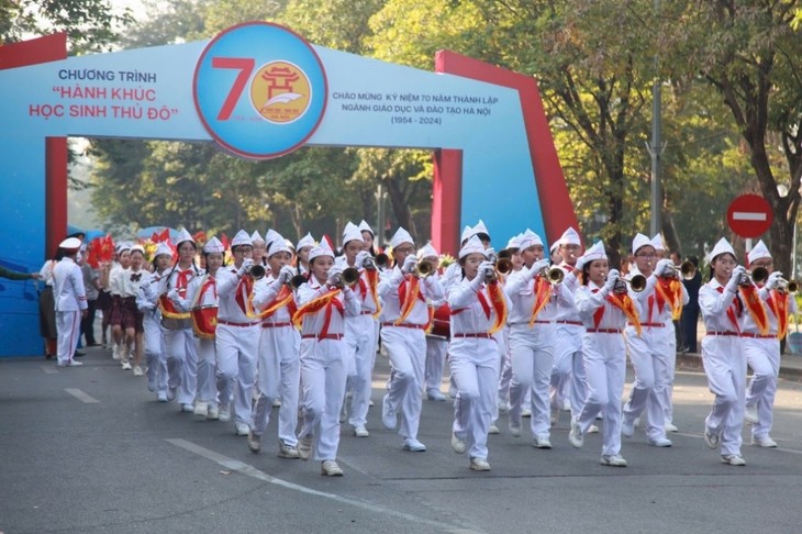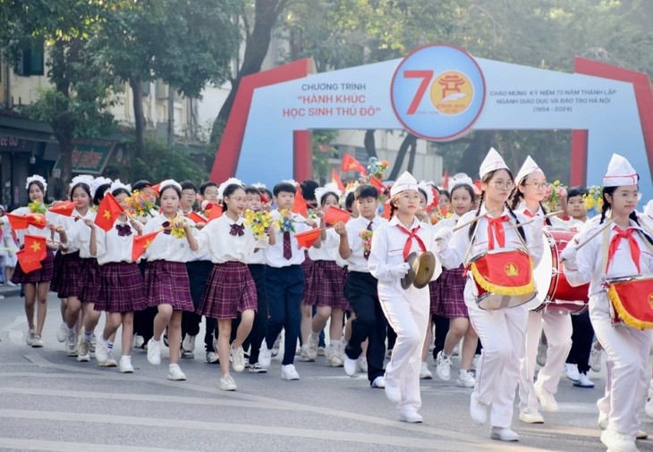 | Am 10. November hat die Bildungsbehörde der Hauptstadt Hanoi das Programm „Marsch der Schüler der Hauptstadt“ organisiert. Mit diesem Ereignis hat eine Reihe von Aktivitäten zum 70. Gründungstag der Bildungsbranche der Hauptstadt begonnen. (Foto: Hong Phuong/baotintuc.vn) |