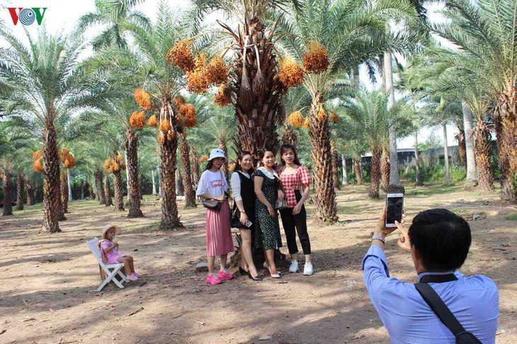 | Im Garten gibt es mehr als 100 Dattelpalmen, die über zehn Jahre alt sind. Er gilt als der größte Dattelgarten in Südwestvietnam. |