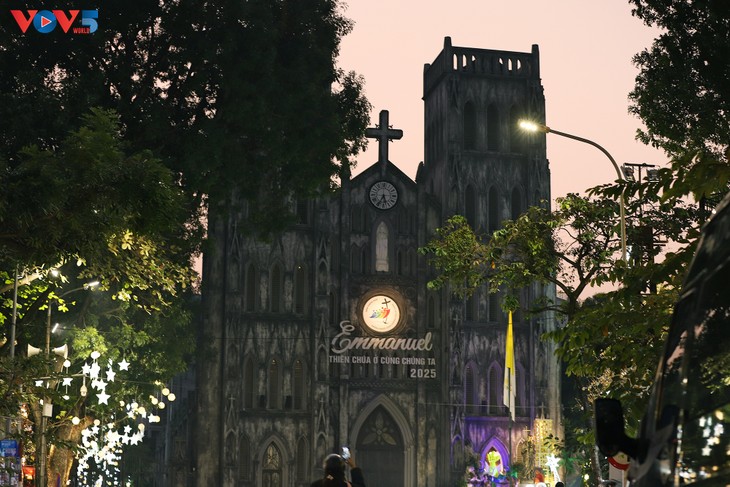| Rund um den Hoan-Kiem-See schaffen festliche Weihnachtslichter eine typische Atmosphäre der Jahresendfeiertage. |