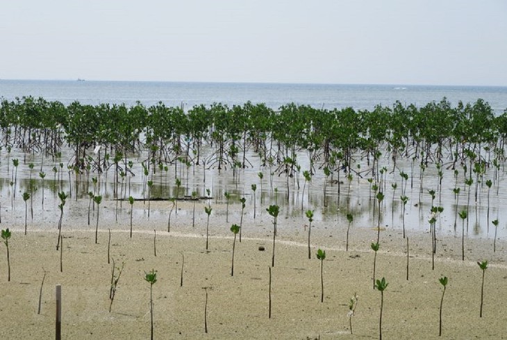 | Anpflanzung von Mangroven zur Wiederherstellung des Ökosystems im Meeresschutzgebiet des Biosphärenreservats Nui Chua. (Foto: VNA) |