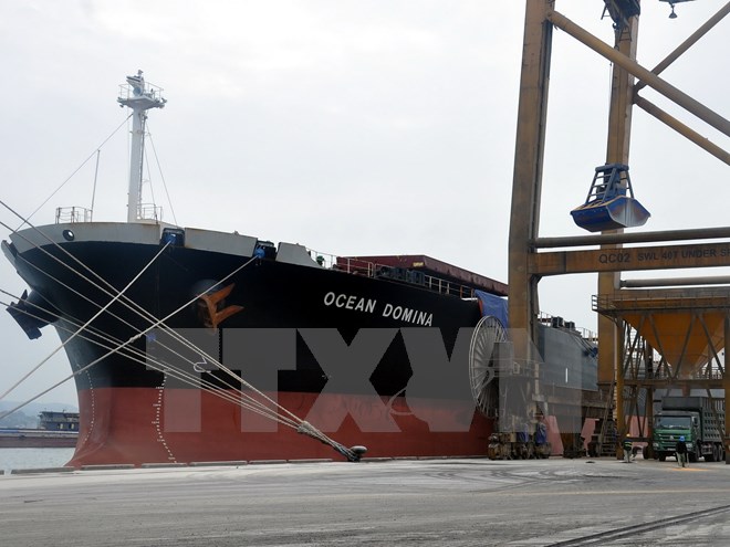 | Ein Frachtschiff trifft im Containerhafen Cai Lan ein. (Foto: VNA) |