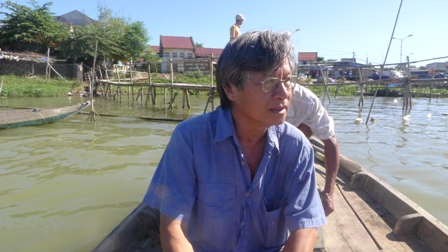 Mit dem Boot besuchen wir das Dorf Triem Tay, das etwa fünf Kilometer westlich von der Altstadt Hoi An entfernt ist. Architekt Bui Kien Quoc hat das Dorf gewählt, um dort das Bauprojekt von Gartenhäusern umzusetzen. Das Dorf Triem Tay liegt am Fluss Thu Bon. Architekt Bui Kien Quoc erzählt, dass es vor vier Jahren zu Erdrutschen gekommen ist: