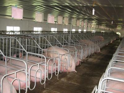| In einem modernen Schweinestall. |