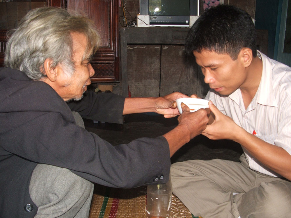 Der Dorfälteste Mau Xuan Duong ist nun schon 75 Jahre alt. Er will sich trotzdem für die Verbesserung der Lebensbedingungen der Dorfbewohner einsetzen. Er hat sie aufgerufen, Reis zu spenden, um zwei alleinstehende alte Frauen zu unterstützen: