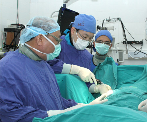 Arzt Nguyen Van Thach (l.) im Operationsraum.